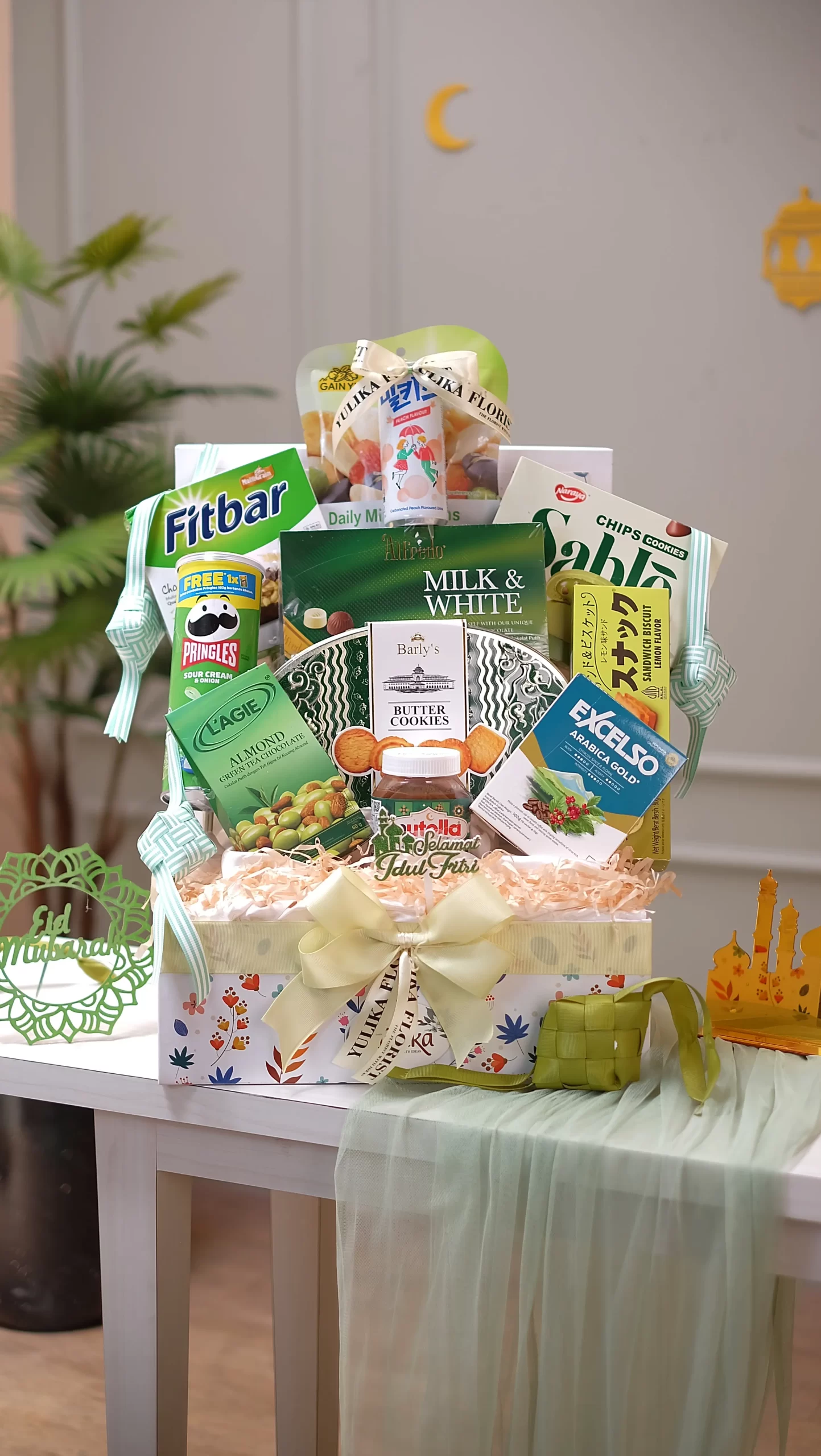 Elegant gifts, delightful treats – flowers, houseware, and snacks in harmony